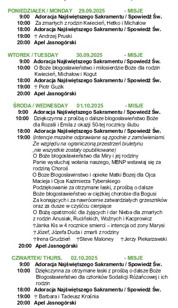 Sobota o godz. 9:00 a następnie o godz. 10:00 Msza Święta.